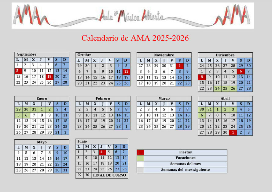 Calendario escolar 2025 - 2026